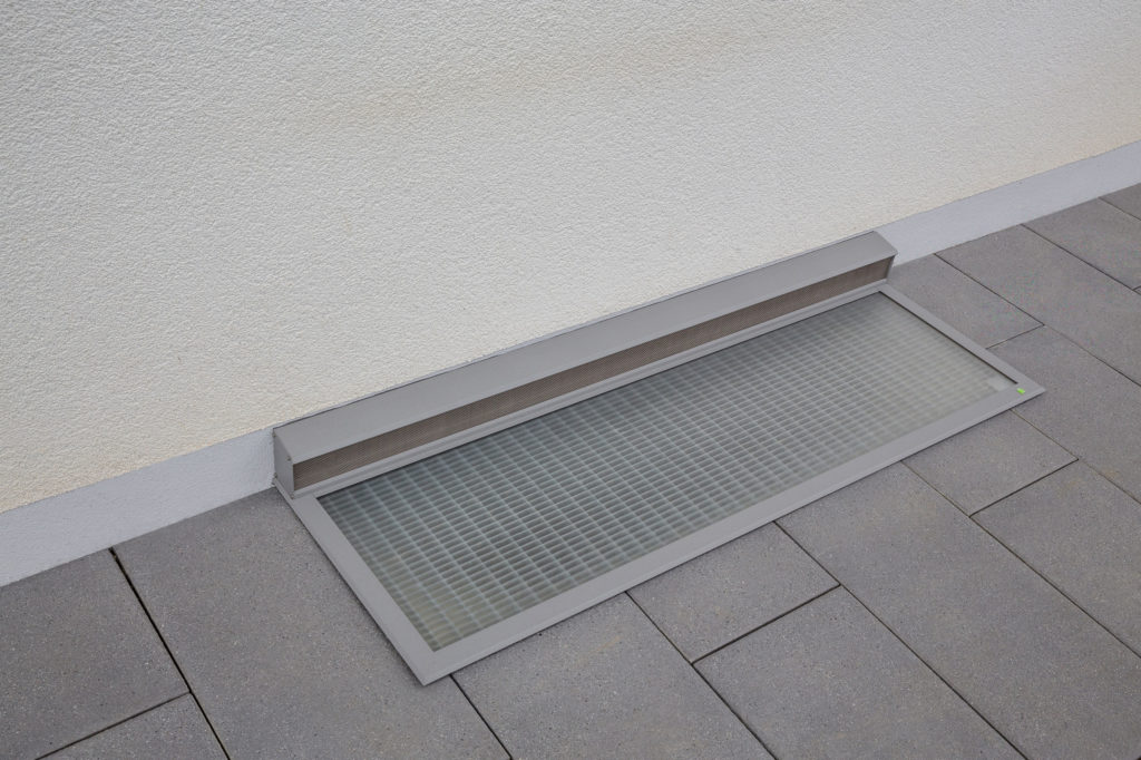 RESi gibt es in zwei Aus­füh­run­gen: schräg an der Wand mon­tiert für maxi­ma­len Luft­ein­lass und flach auf dem vor­han­de­nen Git­ter­rost, um begeh­bar zu sein.
